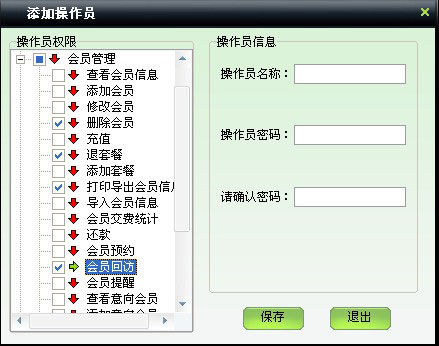 | 包括會員基本信息的管理,如添加、修改、刪除會員,充值,套餐續(xù)費,退套餐,導入導出會員信息,查看會員照片等 | |