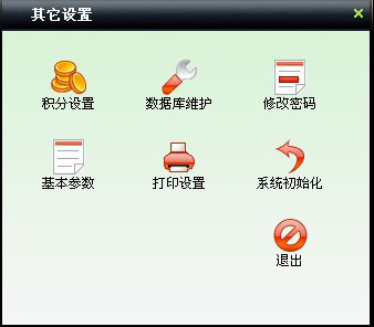 | 包括積分設置、數據庫維護、修改密碼、基本參數設置、打印設置、系統(tǒng)初始化等操作。 | |