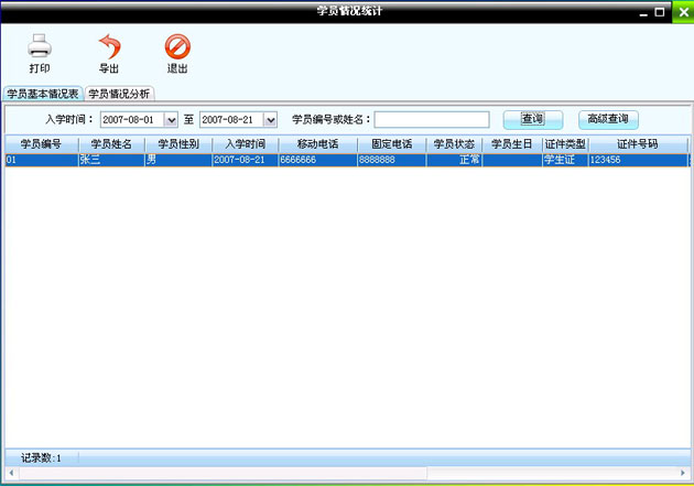 在學(xué)員管理中點(diǎn)擊“學(xué)員基本信息”進(jìn)入學(xué)員基本信息界面如圖: