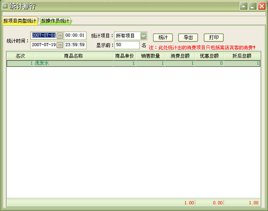 商品項目:是店方提供給賓客的并收取一定費用的項目(例如:陪練、商品、租借物品等)。此項目在系統(tǒng)設(shè)置中設(shè)置,在為賓客增加消費時使用。