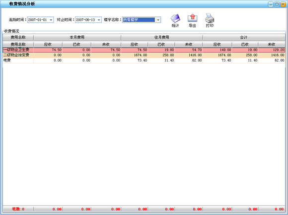 ·1、費(fèi)項(xiàng)設(shè)置分為基本物業(yè)費(fèi)和儀表類物業(yè)費(fèi)兩大類,各自又可定義多種不同的費(fèi)項(xiàng)?;疚飿I(yè)費(fèi)主要是定義那些按戶或按房屋面積收取的費(fèi)用,如:衛(wèi)生費(fèi)、治安費(fèi)等;儀表類物業(yè)費(fèi)主要是按表的走量需要計(jì)算的那些費(fèi)用,如:水費(fèi)、電費(fèi)等,它可設(shè)置定額價和超額價。2、對于儀表類物業(yè)費(fèi)又可分為自用表和公攤表兩大類,并在此項(xiàng)設(shè)置中為每戶分配儀表編號,并為住戶分配要分?jǐn)偟墓珨偙?,以后的抄表就以分配的表號為主進(jìn)行統(tǒng)計(jì)。