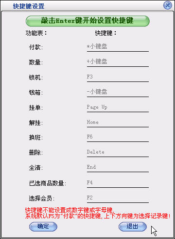 快捷鍵設(shè)置:設(shè)置 POS 中各功能的快捷鍵。