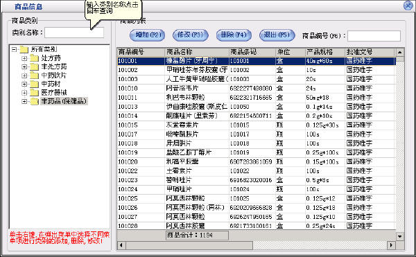 在商品信息窗口中左邊是商品類別,右邊列表中是該類別對應(yīng)的商品。在某一類別上點(diǎn)擊鼠標(biāo)右鍵,可以新增類別,重命名和刪除類別。新增的類別是屬于所選類別的下一級,如果類別下有商品存在則該類別是不能被刪除的。在類別名稱后的文本框中可以輸入類別名稱或類別簡碼來查詢需要的類別。