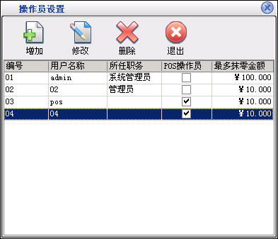 修改密碼:修改當(dāng)前收銀員的密碼。