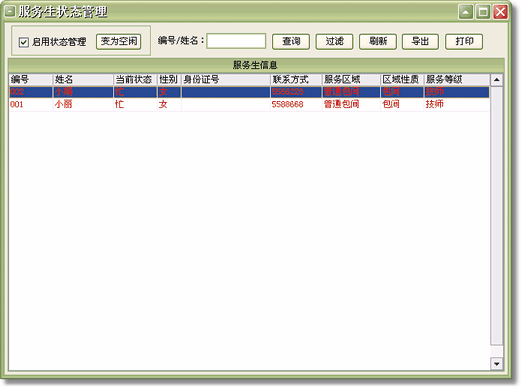 服務(wù)生設(shè)置:服務(wù)生是指能為賓客提供服務(wù)的本店員工,在此設(shè)置中可增加、修改、刪除服務(wù)生信息,還可為每個服務(wù)生設(shè)置相應(yīng)的服務(wù)生等級(例如:高級技師、中級技師、普通技師等)。有了服務(wù)生等級可在商品項(xiàng)目中為每種服務(wù)項(xiàng)目所對應(yīng)的服務(wù)生等級設(shè)置相應(yīng)的提成金額(如果有此需求),此項(xiàng)設(shè)置可為賓客提供服務(wù)的服務(wù)生自動計(jì)算提成金額。