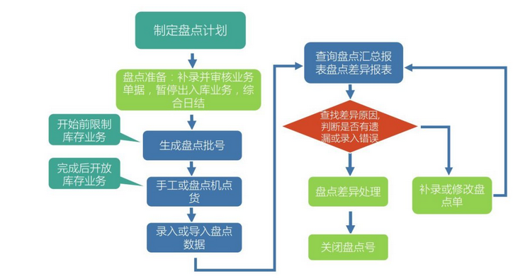 2. 同一商品盤(pán)點(diǎn)多次: 對(duì)盤(pán)點(diǎn)的數(shù)據(jù)有影響。 在某次盤(pán)點(diǎn)時(shí),張三在錄入存貨盤(pán)點(diǎn)單時(shí)盤(pán)點(diǎn)了A商品,李四在錄入另一引用了相同盤(pán)點(diǎn)批號(hào)的存貨盤(pán)點(diǎn)單中也盤(pán)點(diǎn)入了A商品,后在進(jìn)行差異處理時(shí),該商品盤(pán)點(diǎn)數(shù)量會(huì)翻倍,會(huì)導(dǎo)致盤(pán)點(diǎn)數(shù)量不準(zhǔn)確。 處理方法:可重新建引用該盤(pán)點(diǎn)批號(hào)的存貨盤(pán)點(diǎn)單,且商品的數(shù)量=(商品實(shí)際庫(kù)存數(shù)量-差異處理單中商品數(shù)量),再進(jìn)行差異處理時(shí)該商品庫(kù)存才是商品的實(shí)際庫(kù)存。