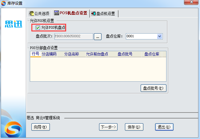 3. 在后臺(tái)“庫(kù)存設(shè)置”—“POS機(jī)盤(pán)點(diǎn)設(shè)置”中,勾選“允許POS機(jī)盤(pán)點(diǎn)”,并選擇對(duì)應(yīng)的盤(pán)點(diǎn)批號(hào),并保存,如下圖: